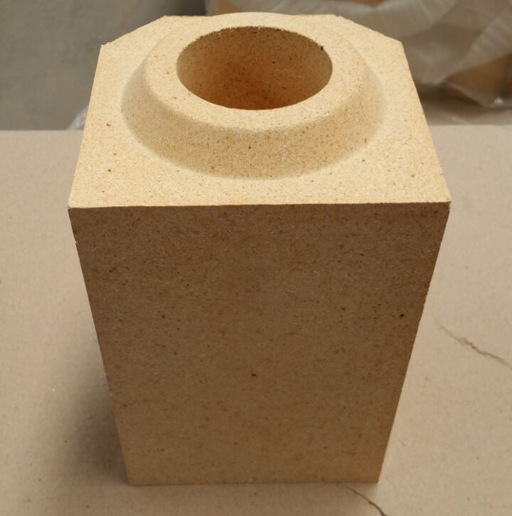 流鋼磚是砌在鑄錠用底板的溝槽內(nèi)連通分鋼磚和鋼錠模的中空耐火磚,俗稱湯道磚。產(chǎn)品一般為有多種規(guī)格的長(zhǎng)方體形中空黏土磚。為減小鋼液流動(dòng)過程中的阻力并防止漏鋼,要求流鋼磚內(nèi)孔光滑,外形規(guī)整,接縫嚴(yán)密。